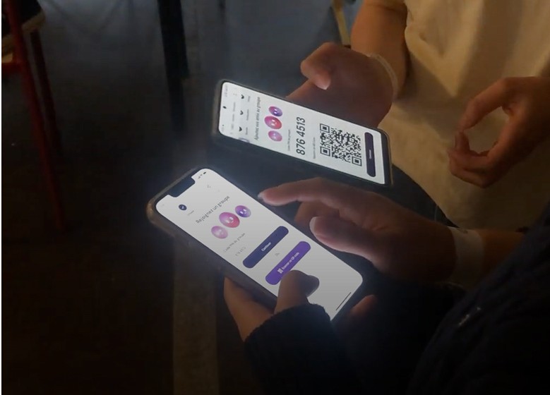 Through the app, users can activate group mode, lighting up their bracelets in a previously configured group colour, and using haptic feedback as a tactile compass to guide them back together. The app also provides a map of exits, group locations, and crowd density, with quick access to essential actions.