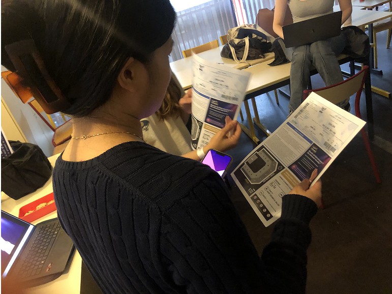 Testing our device within its intended environment, a live concert crowd, proved to be unrealistic at our level. In order to get around this issue, we decided to create a simulation. We crafted paper prototypes of bracelets, transformed a classroom into a pseudo-concert environment (dark room, lights, sound, video), and created an interactive scenario mixing live role-play and on-screen instructions. Participants were tasked with navigating a mini-concert: configuring their bracelet, enjoying the event, signalling distress when discomfort appeared, leaving the crowd, and eventually reuniting with a friend.