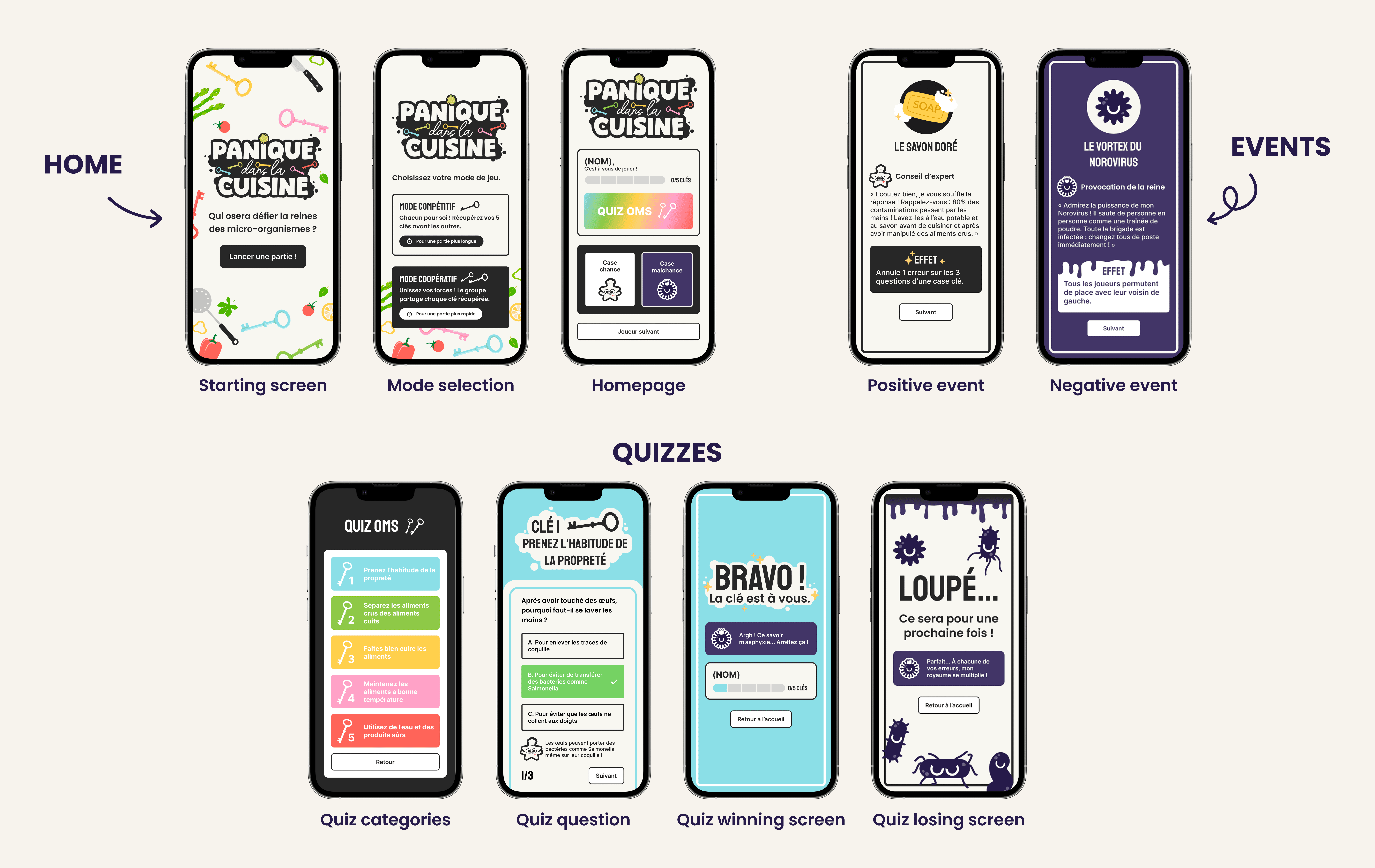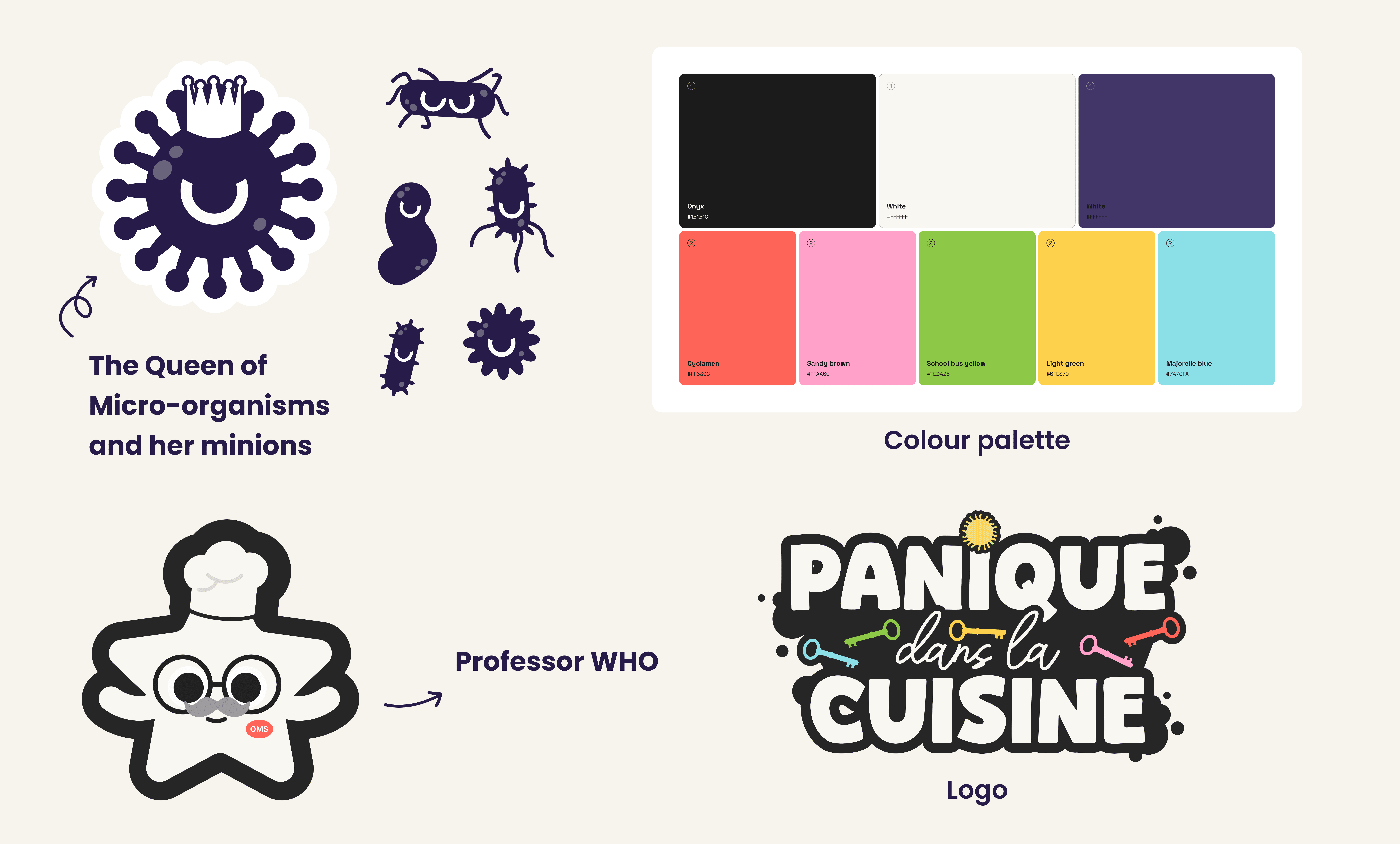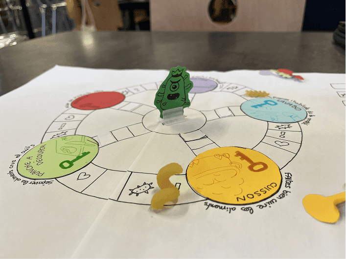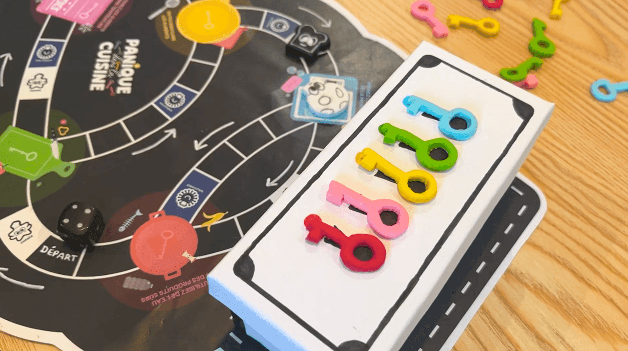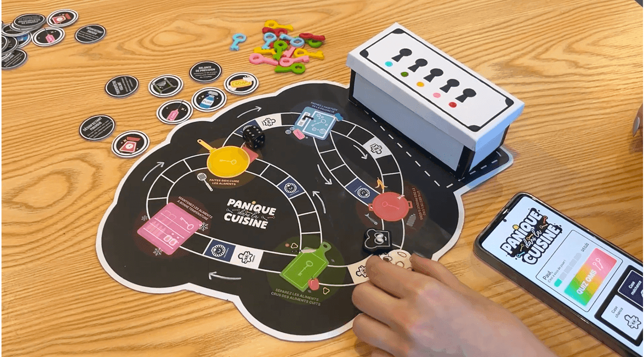 “Panique dans la cuisine” (Panic in the Kitchen) is a hybrid science mediation device created to tackle this commonly overlooked topic. Designed to support young adults cooking on their own for the first time, the project combines a physical board game with a digital application to teach hygiene reflexes in a memorable way.